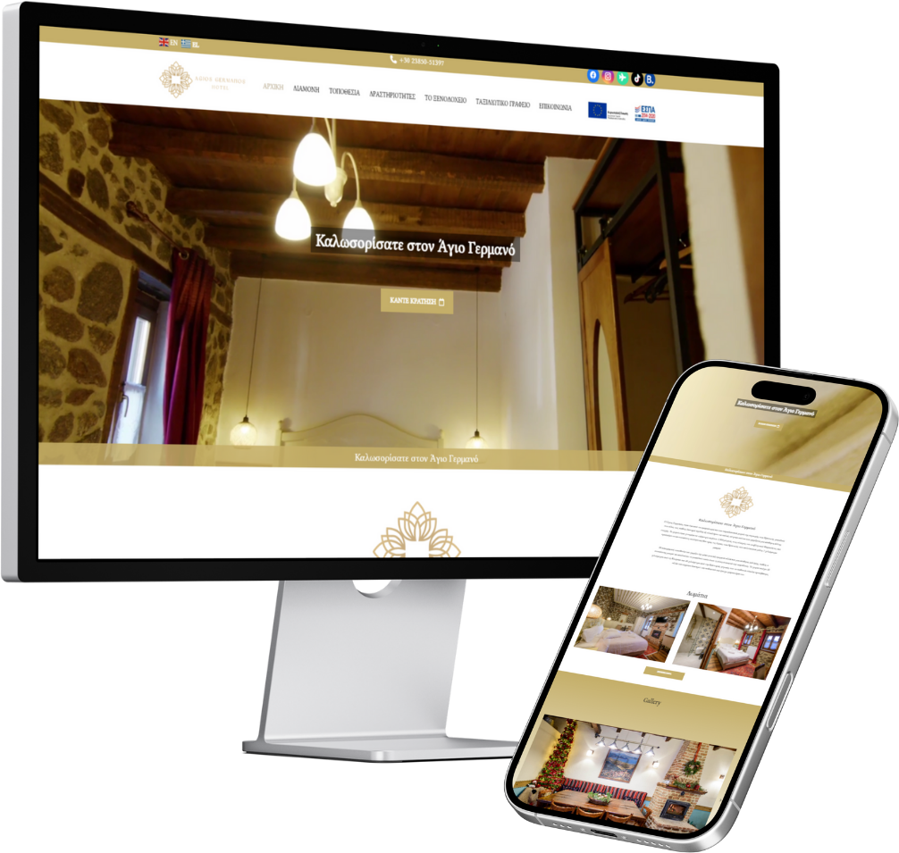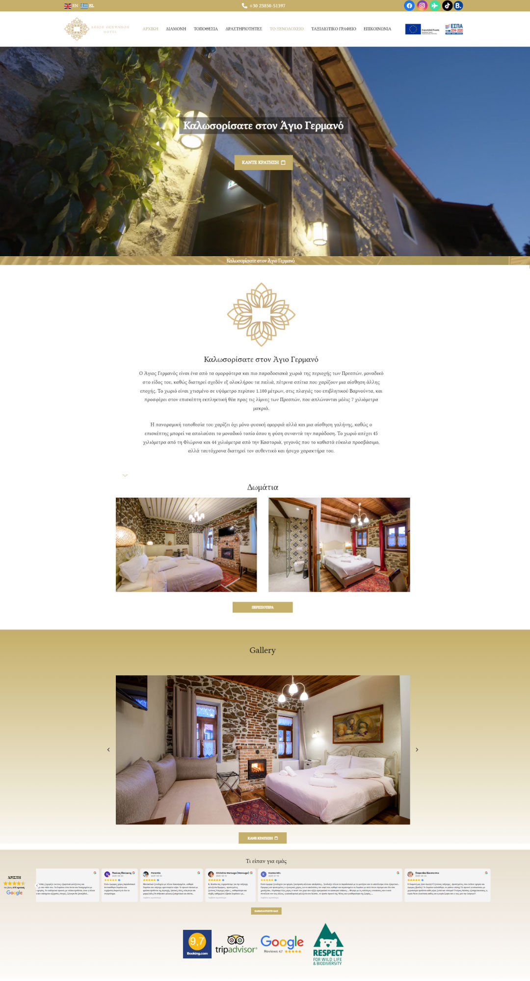 Το αποτέλεσμα είναι μια σύγχρονη, επαγγελματική και φιλόξενη ιστοσελίδα που αντικατοπτρίζει απόλυτα την παράδοση, τη φυσική ομορφιά και την υψηλή ποιότητα υπηρεσιών του ξενώνα “Άγιος Γερμανός”.