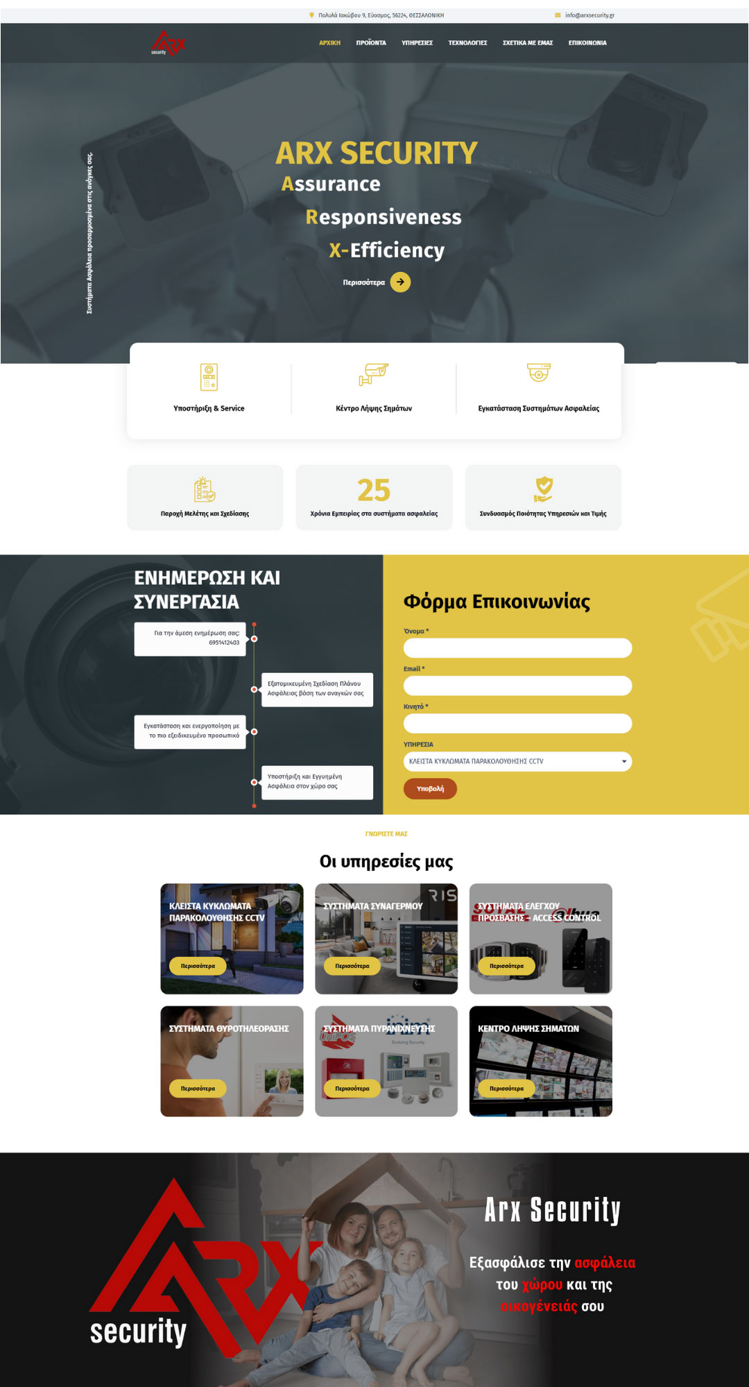 Το αποτέλεσμα είναι μια μοντέρνα και επαγγελματική πλατφόρμα, πλήρως προσαρμοσμένη (responsive) σε κινητά και desktop, που αναδεικνύει την αξιοπιστία, την εμπειρία και την καινοτομία της ARX Security